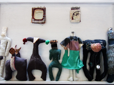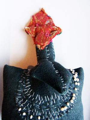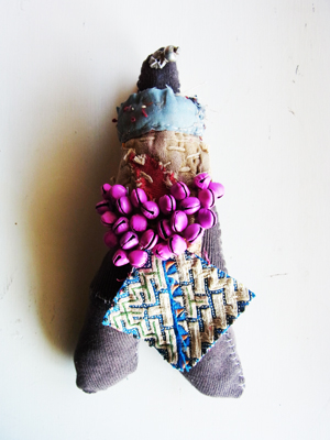 子だくさんを望み、 豊作を希い、 昇り来る朝日を拝み、 病の回復を祈り、 死者を弔い、 誰かを呪っても、 流れるような日々を願って、 装飾と祈りがいっしょくたになった人形を 土偶や埴輪のような人形を、 捏ねるように、 削るように、 ひっつめて、縫い合わせて、つくっていきます
